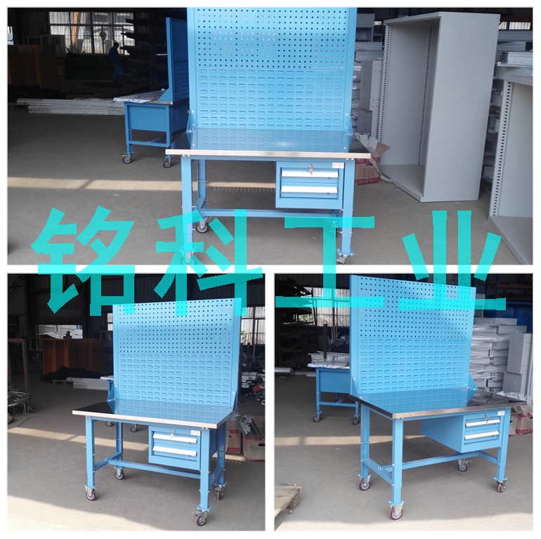 按照客戶要求,加工的工作臺(tái)臺(tái)面高度為可調(diào)式,可以移動(dòng) 可滿足不同產(chǎn)品的現(xiàn)場(chǎng)組裝需要,工作臺(tái)背面加裝工具掛板,不銹鋼包面,產(chǎn)品規(guī)格為1200*750*800 型號(hào)FHW-H1200+B*E,三層工具車規(guī)格為900*500*900