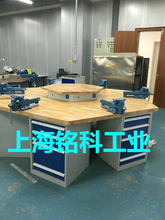 我公司為海航航空技術(shù)中心定制六角鉗工桌安裝交付客戶使用。本批次六角鉗工臺(tái)臺(tái)面超大,單邊長(zhǎng)度達(dá)到1360毫米,桌下配5抽屜工具柜,桌上配六角電氣島一只,臺(tái)面50毫米櫸木指接。